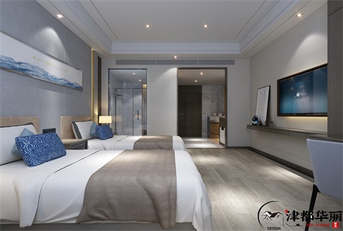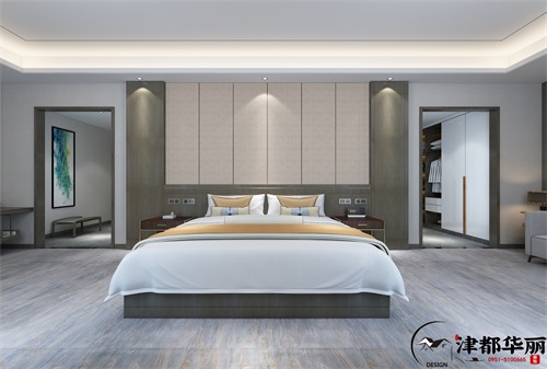 本案的装修风格在简洁时尚的基础上,又多了一些独特的艺术造型设计,大厅的设计都是带有弧形圆形的造型,非常的个性别致,墙面和地面用大理石铺设,时尚大气,但大理石坚硬,大面积的在空间使用,会使空间有僵硬感和冰冷感,所以弧形的墙面、收银台以及舒适圆润的软装搭配,就打破了这种僵硬感,柔化了空间,使空间既保持了洁净时尚的大气感,也同时拥有了温馨舒适的氛围。走廊公区的设计更多的是体现出空间的宁静氛围,嘈杂的环境是每个人都反感的,尤其是酒店空间,本来就是休息空间,更多的要求有优美洁净的环境和安静典雅的氛围,所以简洁的设计手法,搭配时尚素雅的颜色,可以营造出文雅舒适的氛围,体现酒店的品质环境。客房的设计除了洁净舒适以外,还要体现完善的功能性,干湿分离的卫生巾肯定更加方便卫生,拥有一个衣帽间也会方便顾客,还有需要工作的商务人士,为他们设计一个安静的办公空间,是可以得到顾客更好的认可,从每个细节去为每个顾客设身处地的着想,就可以设计出让顾客满意的酒店空间,因为细节决定品质。