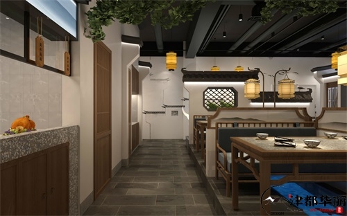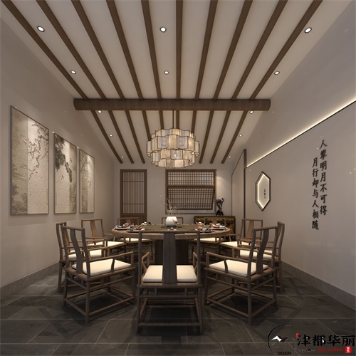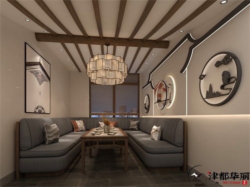 今天分享的案例是餐厅设计装修,本案餐厅设计从美观、功能、文化、经济、实用等方面协调考虑,对传统的中式元素作适当的简化与调整,又对材料、结构、工艺进行再创造,赋予传统餐饮空间新的内涵。在色彩的选用上,选择了木色、白色、米白色等,优雅柔美的颜色。墙面多用护墙板,有加快工期,更耐用的优点。进入餐厅,首先看到的是一个新中式风格的背景墙及前台,过道是餐厅人流多的地方,墙面用护墙板拼接木饰面,采用中式园林的设计让整体氛围更加舒适,雍容的甬道陈饰,辅以舒缓的灯光映射,既营造了的就餐氛围,又让顾客感到温馨放松。包间作为独立的就餐空间,空间处理上拥有相对的独占性与优先性,背景墙两边木制面,更显中式对称美,中式吊顶造型以及不锈钢压条走边,使其空间明亮宽敞,米白色的护墙板搭配地面灰色的地砖,墙面饰品以及软装家具,让整个包间显得清净雅致,为顾客提供舒适的就餐环境。