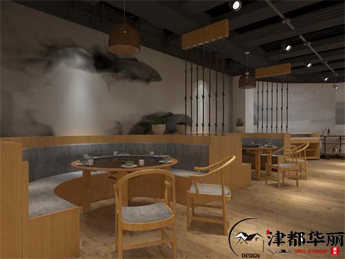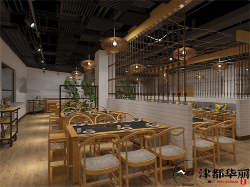 今天分享的是火锅店装修设计案例,本次火锅店主营粥底火锅,以健康养生的饮食理念,将粥和火锅完美的结合在一起。走进火锅店,首先踏过一间小院。小桥流水,青山翠叶,木色桌椅,大厅的装修颇有清新气息,这样的室内设计可谓别具一格。古典幽雅的火锅店环境,古色古香的灯饰和瓷砖,包括墙上置挂的装饰画,都与火锅店整体风格浑然一体,自然和谐。空间更有岁月感的同时不乏现代风,顾客可以品味岁月蹉跎之风味,暖黄色的灯带通过巧妙的设计,创造出诗情画意的景观,大厅使用隔断式设计显得更加有层次感。包间可以满足顾客的各种用餐需求,家庭聚会、商务宴请、公司团建等。