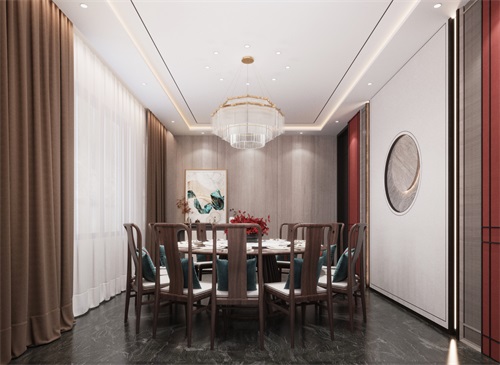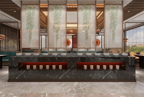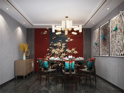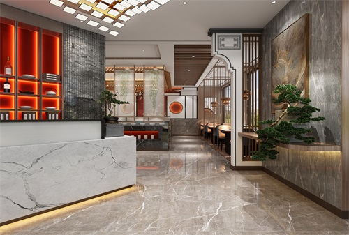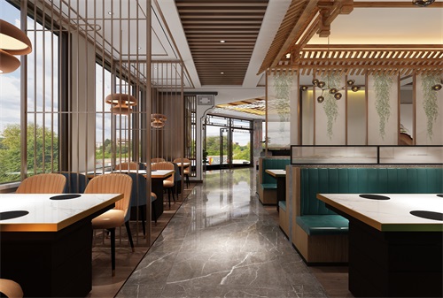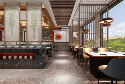 今天分享的是大武口火锅店装修设计案例,本案火锅店设计采用现代中式风格的设计手法,设计师非常注重空间效果给人带来的视觉体验,华贵美艳的装饰,将风格的特点展现得淋漓尽致,真是火锅店设计的标杆。采用红木色与白色结合,保持古风基调的同时,空间感显得更为立体。屏风与包间的设计,在保持空间感的同时也兼顾到顾客的隐私。现代化的餐桌搭配古式屏风与牌匾,国韵十足却又不显老套。大厅里简单的装饰却实为妙哉,绿植、摆件各司其位,恰到好处地点缀其中。人们走到这里,总能感受到说不尽的古韵与清雅!一缕清风从前方吹来,只觉得有一种爽朗的感觉沁人心脾,通透的空间结构就是有这样的特点。整个空间都充满这华贵的感觉,很是细腻的摆件给此处增添不少迷幻的色彩,在这里用餐真是别有一番味道。 大落地窗让阳光从外面照射进来,人们的心情会顿时变得愉悦起来,宛如在一个春日的早晨那般宁静与美好!