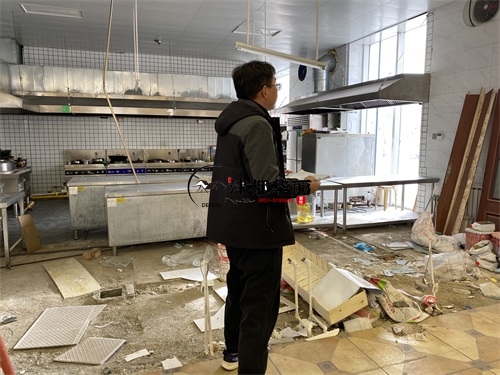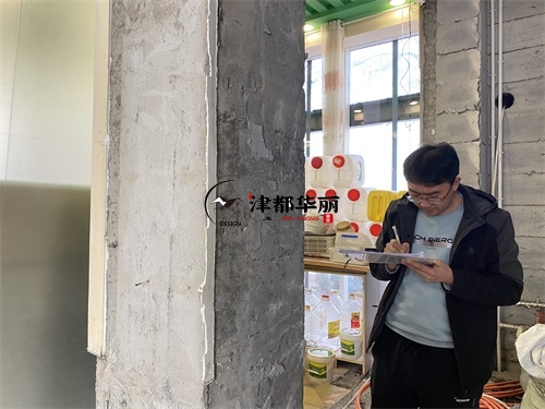 大武口装修公司|大武口现代城火锅店装修设计项目量房现场