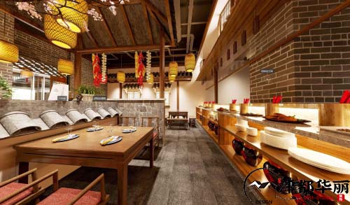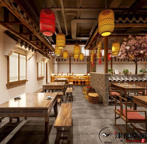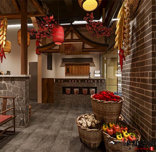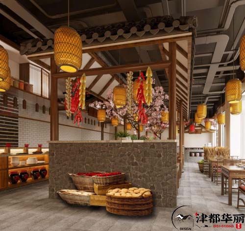 随着社会的流行趋势以及人们的思想观念的改变,餐厅的装修风格越来越多元化,不同的装修风格带给我们不同的视觉享受,今天分享的是乡土风格下的餐厅效果,整体的设计传统复古,这种淳朴的乡村景象占据了整个空间,与城市的高楼大厦、霓虹闪烁形成了鲜明的对比,而这里,仿佛与世隔绝,将我们带入了另一个地方,这样的设计,年代感和历史感很强,所以很容易让我们有身临其境的感觉,给人一种不一样、且真实的空间享受。这种风格的形成,主要是因为大家现在所崇尚自然,追求轻松的享受式的生活态度,使得大家怀念以及喜欢这种质朴的乡村文化。在本案中,设计师将乡村元素以及乡土风貌展现的非常形象,除了乡村元素以外,设计师还为空间注入了中式文化元素,古时候的账房设计,中式隔断以及家具,都展现了中式文化的传承和应用,让我们感受到的不仅是乡村的淳朴,还有文化古韵的熏陶,营造出的就餐氛围轻松悠闲,优雅宁静。