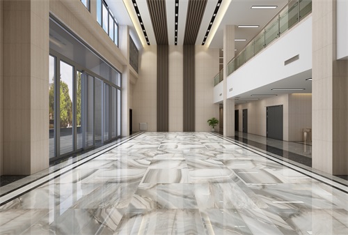 此次办公楼装修面积比较大而且空间规划布局也比较复杂,设计师将办公楼大厅作为设计的重点,一走入大厅就可以看出整个办公楼的设计档次和装修效果。进入大厅,首先我们可以清晰地看到企业的文化标语,以其企业文化的自由、平等、公正、法治、爱国等为主题,体现了企业的发展理念。侧面的大理石装饰墙给整体空间带来了视觉冲击感,也是大厅华丽的标志。大厅地面采用通透而淡雅的花纹瓷砖,直中见曲,打破了单一、整齐的格局,打破原寂静的空间,大厅上方呼应以直线为主调、整齐连贯的吊顶,大直大方显示出强烈的纵深感,加之以排列整齐的灯光设计,让整体空间突显出工整气派、大家风范的企业形象。在二楼走廊的设计上,地面瓷砖的颜色相对沉稳柔和,顶面的造型简约, 以突出空间的舒适感。整体简约大气的装修风格体现出企业办公楼的现代时尚特性,以干练快捷的设计节奏,展示出质量与效率并举的时代精神。