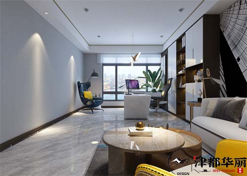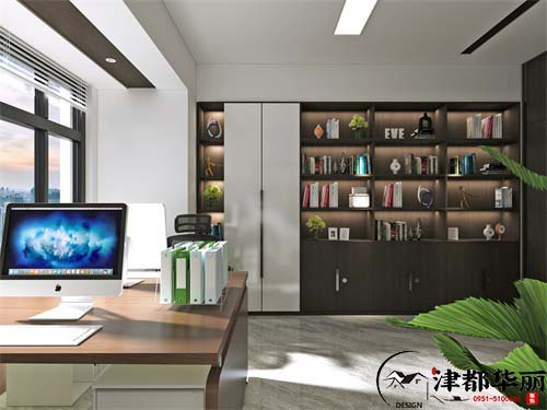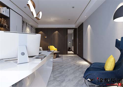 现代办公的装修一般追求简约时尚,便捷高效,给办公者提供一个温馨舒适的办公场所。所以在这次的办公室设计中,整体简约而有内涵,简单的设计会让整体空间显得干净整洁。公司形象墙的设计简约时尚,L型的设计合理的分隔了空间,让空间更加的有层次性,灯光和绿植的点缀让形象墙更加的生动丰富,给我们的印象就是时尚且欣欣向荣。办公区的吊顶造型简单而时尚,搭配零星点点的灯光,颇有艺术感,整齐简约的办公桌椅,放上几盆绿植,这里被装饰的刚刚好,宽敞舒适,也将空间合理的利用完整。领导办公室的设计宽敞气派,深色木质墙柜颜色突出,但又和整体空间融为一体,突出了空间的品质和大气。