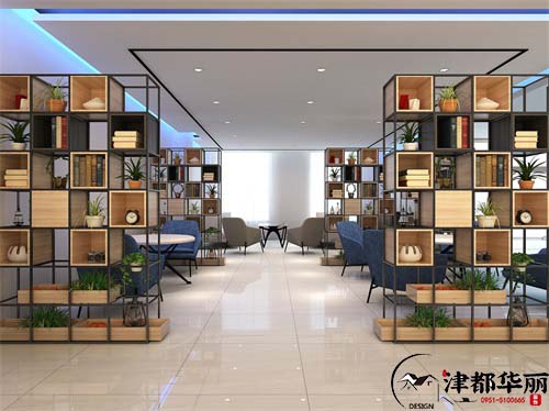 办公空间代表的是企业的形象,打造一个和企业本身贴合的办公空间,可以为企业带来更好地发展,也可以为员工带来精神支柱,让公司的整体气氛更加和谐。本案的企业经营理念是以创新的科技体现卓越的品质,所以我们此次的装修设计也融合了企业的文化理念,从办公空间设计上去体现企业所追求创新与品质的文化理念。在设计上以简约的设计手法,打造出空间的时尚感和科技感,大厅蓝色的文化墙用简单的造型设计,简洁大方,蓝色更是体现出了科技创新的理念,突出了企业文化标志,给我们以视觉上的震撼。大厅休闲空间的设计温馨舒适,简洁明亮的空间设计,柔软舒适的沙发座椅,让我们感受到了轻松与惬意,几组书架将空间进行了简单的分隔,既美化了空间,又增加了空间的隐私性,让这里变成了一处悠闲文雅的空间,不论是员工休闲还是访客等待,都会让人轻松舒适,同时也体现了企业的人文情怀,提升了企业办公空间的品质和企业的整体形象。简约而又精心的设计会让空间有一个全新的面貌,文化理念的注入,赋予了空间灵魂,神行聚合,让我们清晰的感受一股强大的空间气场,这就是企业内在品质的体现。