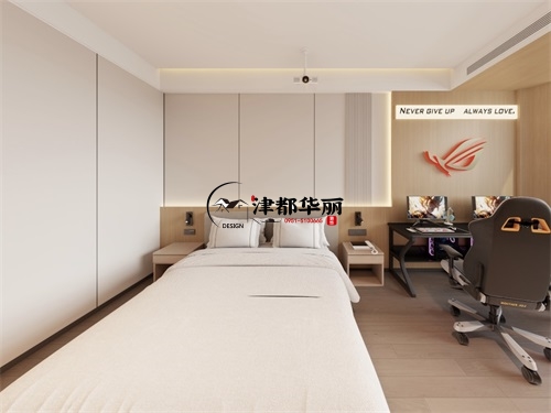 今天分享的是大武口光环星电竞酒店设计装修方案鉴赏。该电竞酒店的设计装修面积在1000平米,设计师将房型分为大床房、标准间、三人间、四人间、五人间,每个房型都根据入住的人数配备相应的电脑、耳机等设备,方便旅客的娱乐。主案设计师根据客户的设计装修需求,为其打造出的电竞酒店设计方案。酒店的整体设计风格走的是居家温馨风,装修材料上多采用木饰面板,卡其色地板,整体的色彩偏温和。随着人们消费需求的提升,这种多功能复合型酒店会越来越受消费群体的欢迎。