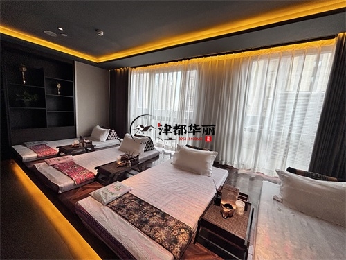 今天分享的是大武口德舞养生会所装修设计项目落地实景。该养生会所以泰式风情为主导,设计打造了一个既神秘又放松的养生环境。经典复古的泰式装修,抬眼看就是满眼星空,给该会所增添了古朴独特的韵味。客人一进入这样的会所空间,立刻会有“格调清高、古风犹存”的感觉,在颜色上我们多采用棕色以及金色,墙面的装饰画也独特又精致,并搭配具有泰式特色的大象、橡树等象征性标志,凸显泰式韵味。我们的设计上把东南亚崇尚自然、取材自然的设计理念表现出来的同时,还充分考虑到了东南亚独特的人文气息关怀,将其与现代工艺完美融合,方能打造出这样一个极具设计魅力的会所环境。
