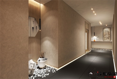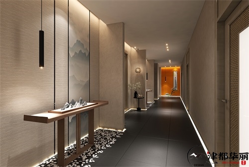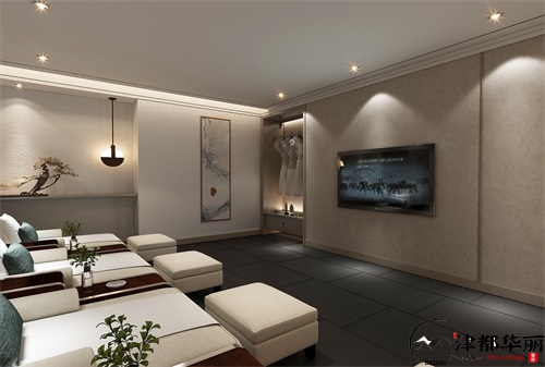 会所的装修风格上选择了轻中式风格,整体颜色搭配上是净而素雅的,搭配简单但国风感十足的装饰画作和绿植花卉,让整体氛围更加有传统感和文化气息。虽然装修装饰上都比较简约、简单,但是整体设计出来的效果却是一个有内涵,有文化韵味,高贵大气的空间,这是我们的设计师凭借个人的专业能力、文化素养,以及投资人对传统文化的喜爱和尊崇结合设计出的空间效果。