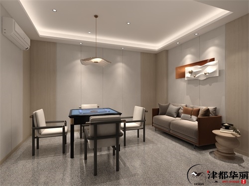 简约不等于简单,它是经过深思熟虑后通过创新得出设计和思路的延伸,不是简单“堆砌”和平淡的“摆放”。现代简约力求外形简洁、功能强,强调空间形态和物件的单一性、抽象性。现代都市人更喜欢自由、轻松的氛围,台球俱乐部是一个可以消除工作疲惫,忘却都市喧嚣的安静空间。这是一家台球俱乐部设计装修项目,设计师试图抓住各种闪耀着人性光辉的不同,发现人们内心更深层次的精神诉求,以此总结出相应的生活方式,并将其转化为可见的设计形式。让现实与幻想之间呈现出一种虚无。灰色别致的大厅,个性绽放,它间于白色和黑色之间,比黑色更显活力,比白色更显沉稳,从不哗众取宠,却深得人们的喜爱。石材的光感中点缀着些许绿意,挑高的顶部和独特的线条灯,灯光穿梭其中,好似在都市中忙碌的光景。垂直的灯光和线条灯搭配,使得主厅线感更加灵活,沉稳的色调,极简的勾勒;仿佛商界精英般睿智内敛。球区整体沿用了灰棕色调,点缀蓝色、白色跳跃感,宛如比例精细优雅,矜持理性的绅士,平静柔和,给人以和谐统一的视觉感受,传递出细腻的放松情绪。棋牌室空间以简练现代造型与线条,暖灰色调,融合简洁细致的硬装氛围,注入不同层次触感,又契合着整体空间设计主题,烘托出生活与艺术的惬意氛围。